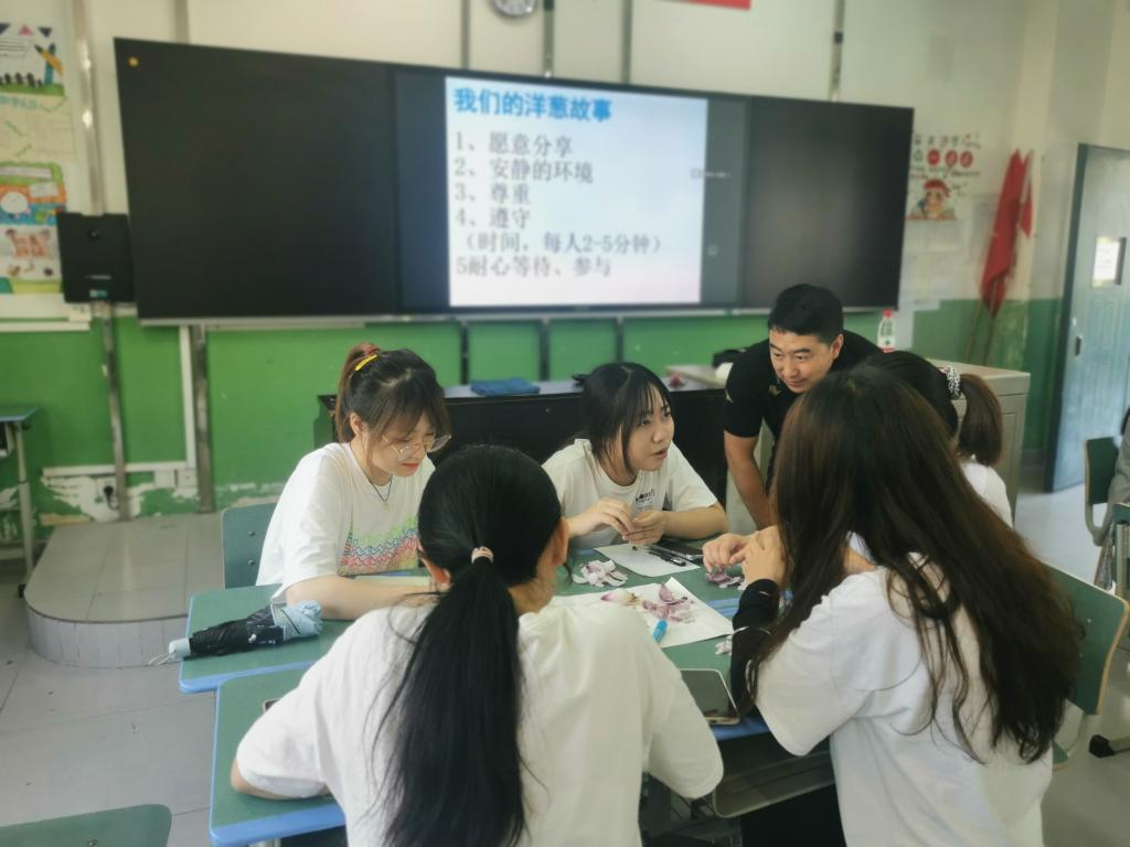 苏成刚老师带领现场师生进行互动,通过开展“苦乐”分享,带领大家释放压力、学会倾听、学会倾诉。在分享过程中,小组成员积极沟通,依次发言,向队员诉说自己的感受。