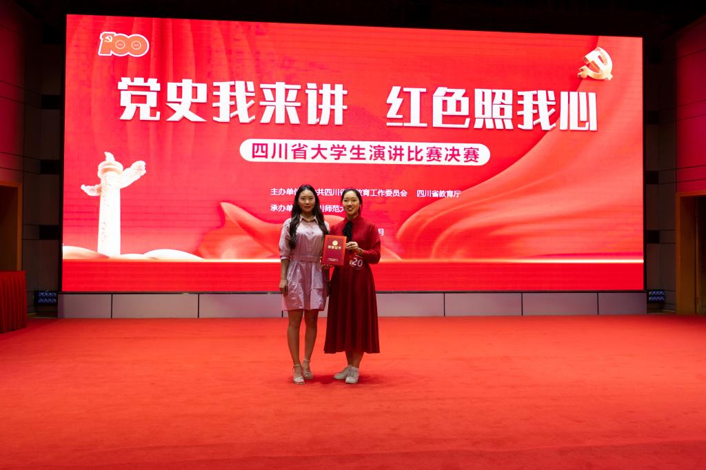 “党史我来讲,红色照我心”四川省大学生演讲比赛自4月启动以来,我校积极开展工作,各学院组织院赛并推荐优秀学生参与学校比赛,经过学校复赛、决赛的激烈角逐,最终推荐文化艺术学院2019级汉语国际教育专业周鑫同学代表学校参加省级比赛。全省高校积极参与本次比赛,主办单位组织专家评审团对86所高校上报的168个演讲视频作品进行复赛评审,最终20名选手脱颖而出,我校选手周鑫成功入围决赛。