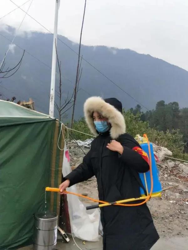 白玛央宗的工作主要是村里的防控宣传、清洁消毒与轮班执勤。在村口执勤的时间里,防疫消毒是每天必做的事情,但消毒还远远不够,还要设法阻断村民和病毒可能接触的途径。虽然有的时候不被理解,但她时刻保持警惕,积极动员村民们勤洗手,多通风,少聚集,戴口罩;并且及时将官方信息传达给村民,对不实言论的传播及时阻止,引导村民不信谣、不传谣,有效地避免引起恐慌。