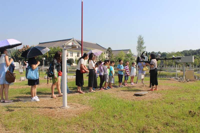 在综合气象观测场,志愿者们用简单易懂的语言介绍了湿、温、风、雨等相关气象测量仪器,让孩子们近距离接触,并了解气象观测仪器的构造和作用,小朋友们对一个接一个新奇的气象仪器表现出极大的兴趣,一旁的家长也不时向志愿者们询问有关的气象知识。