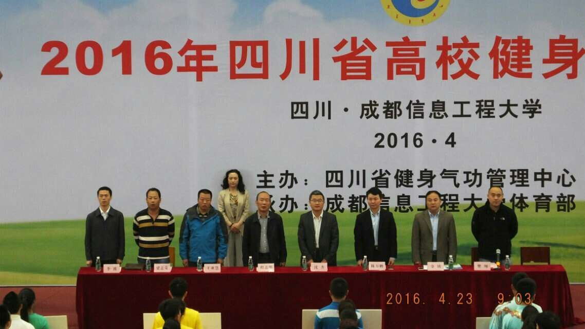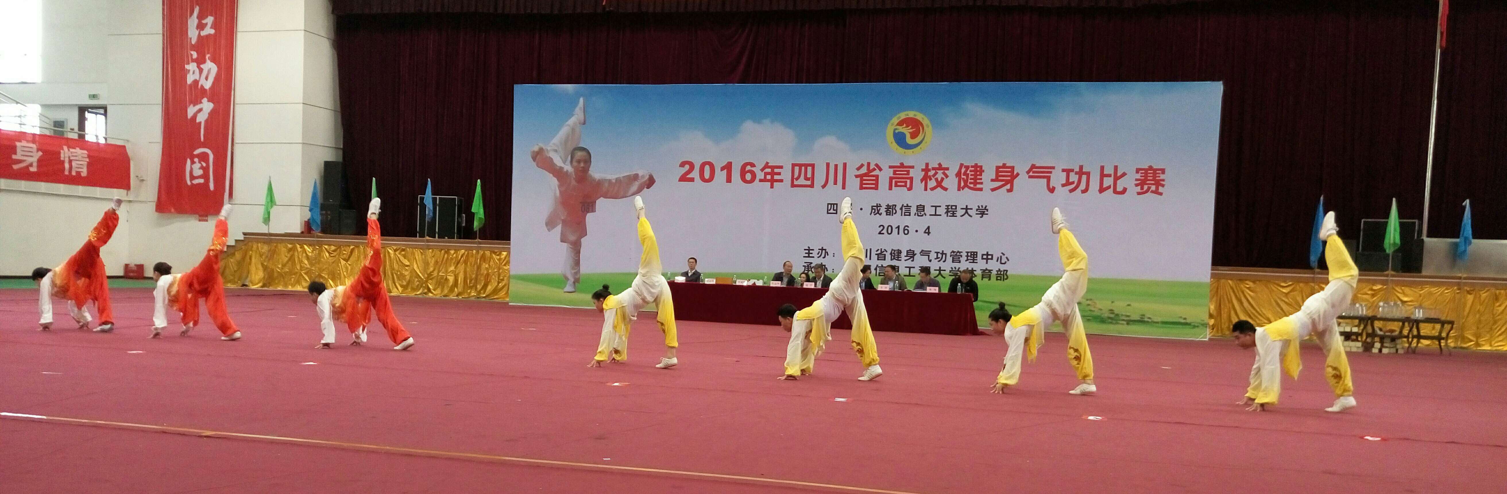 【本网讯】由四川省健身气功管理中心主办,悟空官方网站体育部承办的2016年四川省高校健身气功比赛,于4月23日在我校体育馆举行。参加本次比赛的有成都中医药大学、成都大学、内江师范学院、西南科技大学、成都体院学院、成都理工大学、四川师范大学、四川理工学院、西华师范大学、乐山师范学院、内江职业技术学院、悟空官方网站等12所高校的25支队伍128名运动员教练员参加比赛。比赛项目为国家体育总局审定推广的健身气功“易筋经、五禽戏、六字诀、八段锦”四种普及和竞赛功法的集体及个人比赛。进行了二个单元136项次的比赛。
