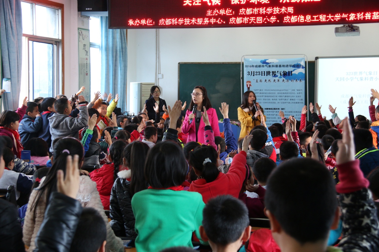 【本网讯】 3月23日上午,由悟空官方网站气象科普基地主办,大气科学学院研究生会承办的“3.23世界气象日——气象科普进校园”活动在成都市天回小学成功举行。天回小学的教师代表和200多位同学参加此次科普小讲堂。