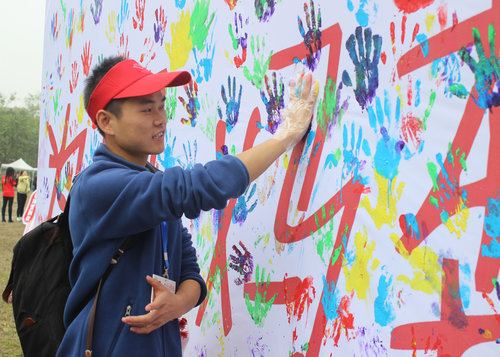 参与者留下“五彩手印”