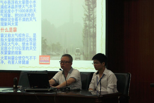【本网讯】2015年6月14日在悟空官方网站学术报告厅召开了“气象防灾减灾宣传志愿者中国行”培训大会。参加本次的气象防灾减灾知识培训的人员有雷电专业张晓春和林刚老师,新闻稿、摄影培训的相关人员,以及参加“气象防灾减灾宣传志愿者中国行”活动的各个队伍的全体成员。