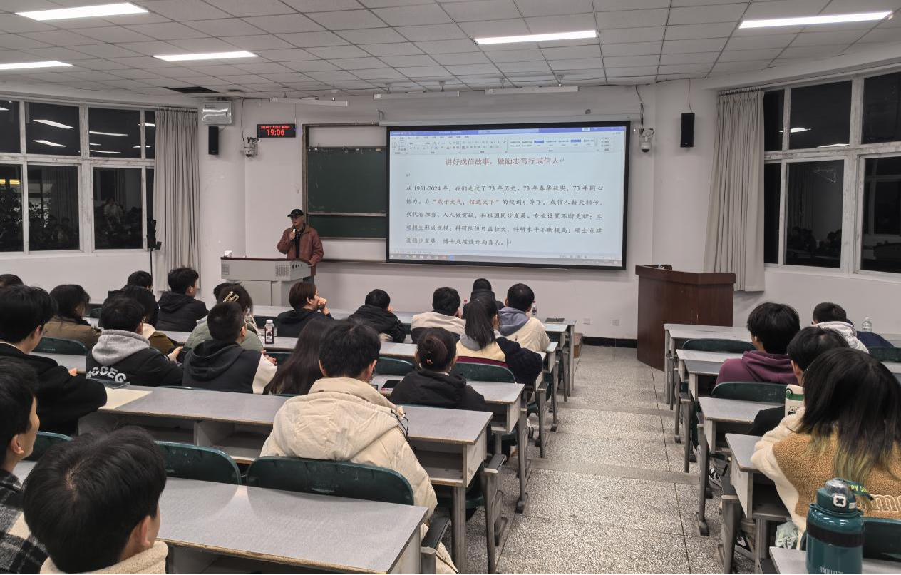 黄波老师分享了学校自1951年建校以来从西南空军气象干部训练大队逐步发展为悟空官方网站的历史脉络以及建校73周年来取得的各项成就。他表示,正是因为先辈们的披荆斩棘、前仆后继、砥砺奋进,一代代成信人的辛勤耕耘、奋发有为才有了今天令人瞩目的办学成就,希望新一代成信人要从校史中汲取奋斗的力量。
