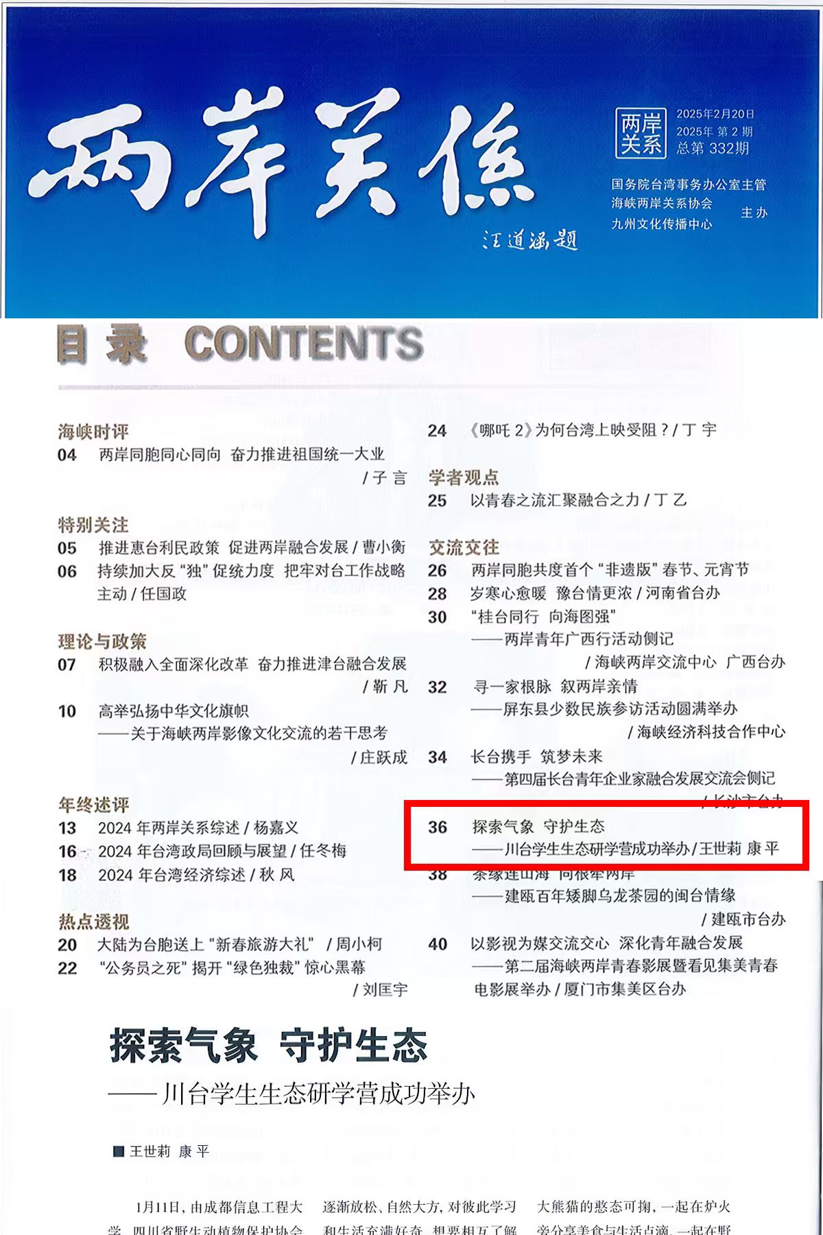 《两岸关系》(第332期)刊载我校生态研学营项目