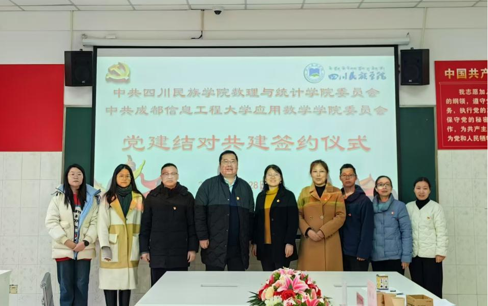 党建结对共建:拓展协同发展路径。2024年9月与四川民族学院数理与统计学院签订党建共建协议,构建“资源共享、优势互补、合作共赢”的协同机制。双方联合开展“学习党的二十大精神”主题党日活动1次、教研交流2次(聚焦数学课程思政设计)、学生交流活动1次(组织优秀学生线上分享学习经验),合作申报校级教研项目1项,相关工作获四川民族学院发来感谢信,进一步扩大党建影响力。
